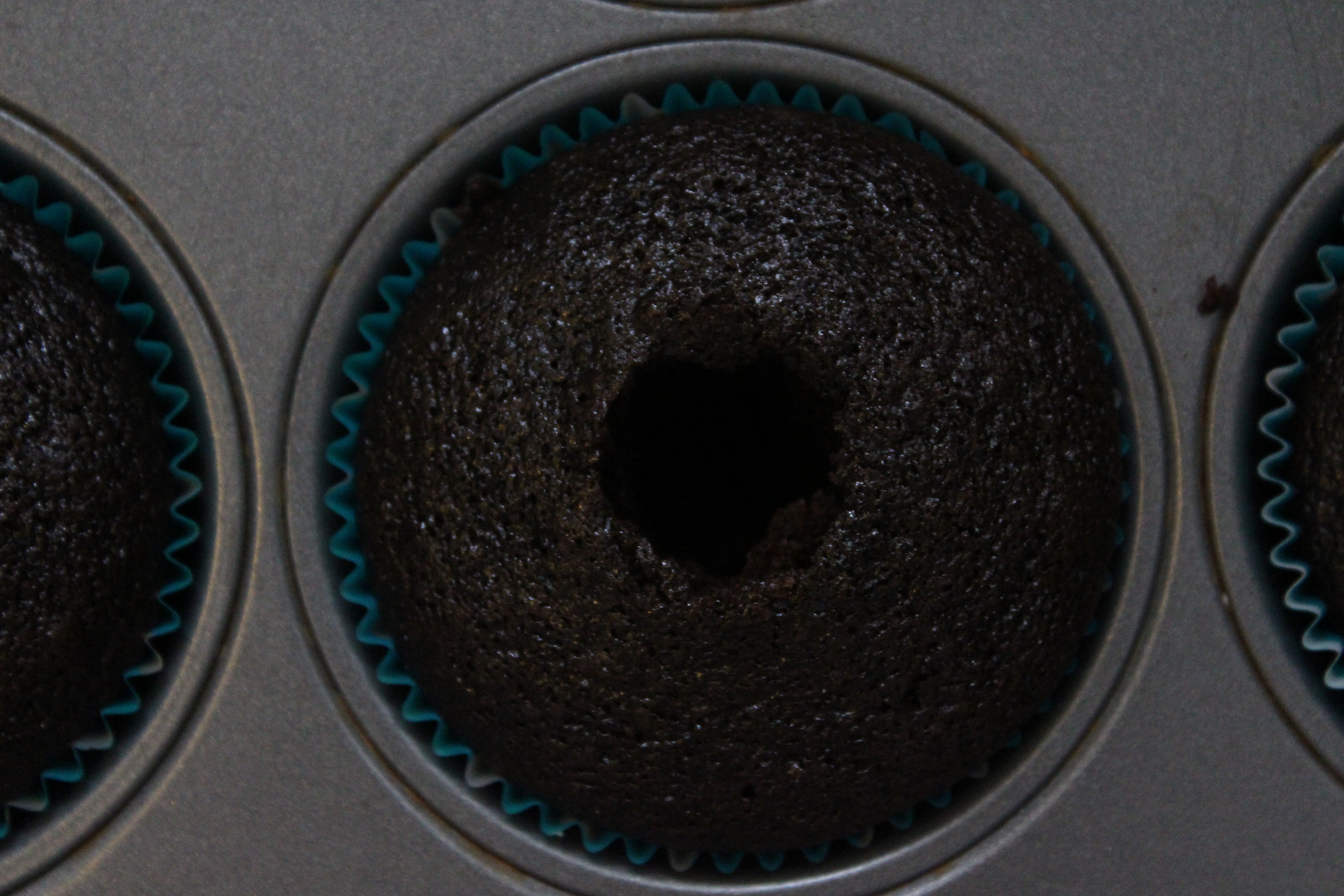 When everything is cooled, you’re ready to start assembling. I found this handy dandy apple corer at the hardware store for like 6 bucks, and it did an amazing job. I’m sure that you could also use a paring knife and scoop out a bit of the cake in the middle.