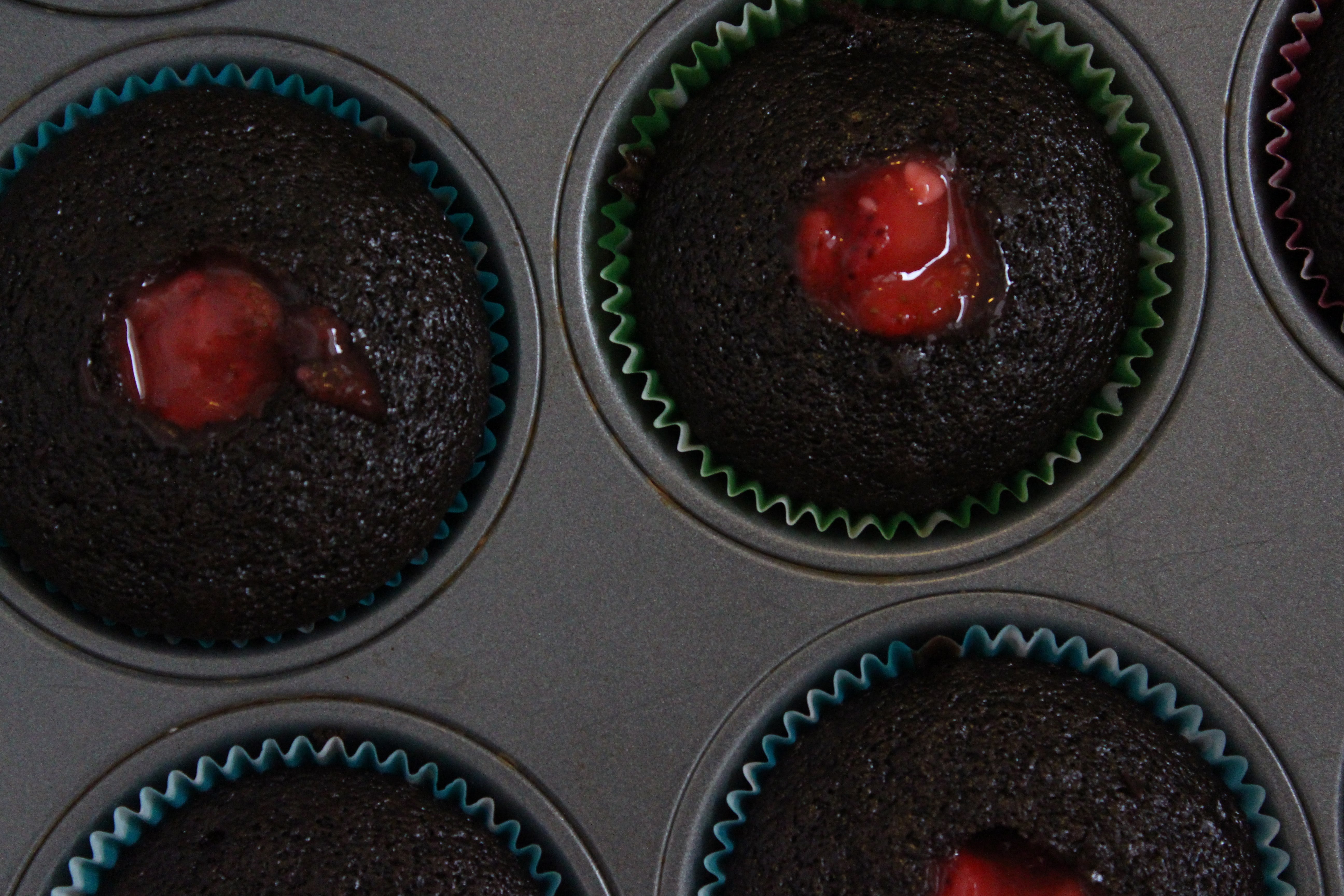 Oh my gosh. Who said being vegan was healthy all the time? If it wasn’t for my wonderful friend’s birthday I may have never come up with these. Last February I made chocolate strawberry shortcake cupcakes (before this blog existed) and my friend loved them. Since I invited her to dinner at my apartment for her birthday, I asked what she would like me to make and she asked for those cupcakes again. Now, I couldn’t just make the same old cupcakes and call it a day. Especially on a birthday! So as usual, I poked around my cookbooks and various googled recipes for inspiration. What I came up with were a different spin on the Valentine’s Day cupcakes. Now I must warn you, these are not in the “easy” category. But definitely worth the effort if you have the time and if you’re making them for someone special (or just yourself on a Friday night – no judgement, I’ve so been there!)