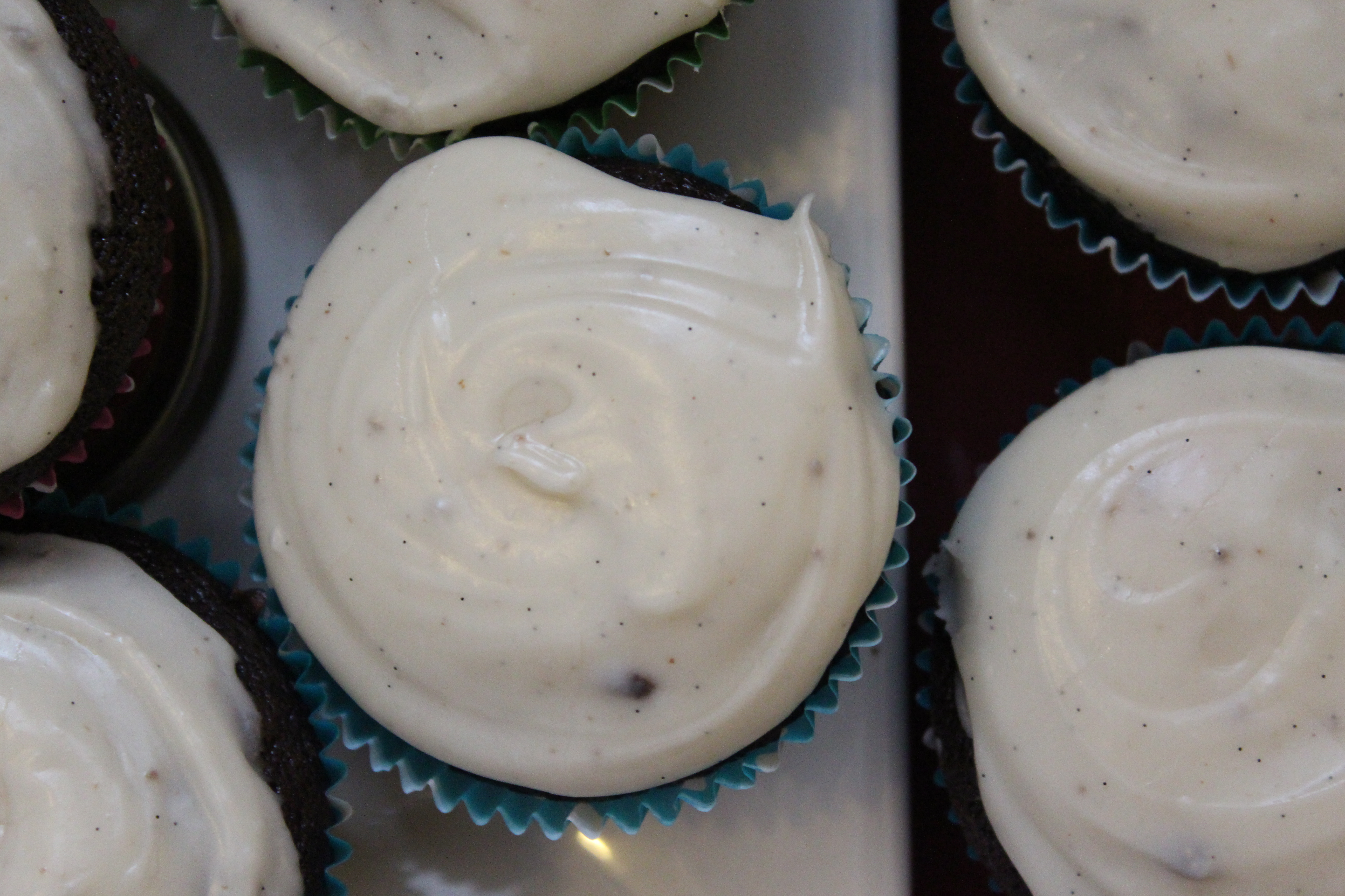 - 1/2 whole vanilla bean (I ran out of extract and went with the real deal. You could probably use about a tsp of extract and get the same result – but with the bean I get actual vanilla flecks in the frosting, which I thought was pretty neat.)