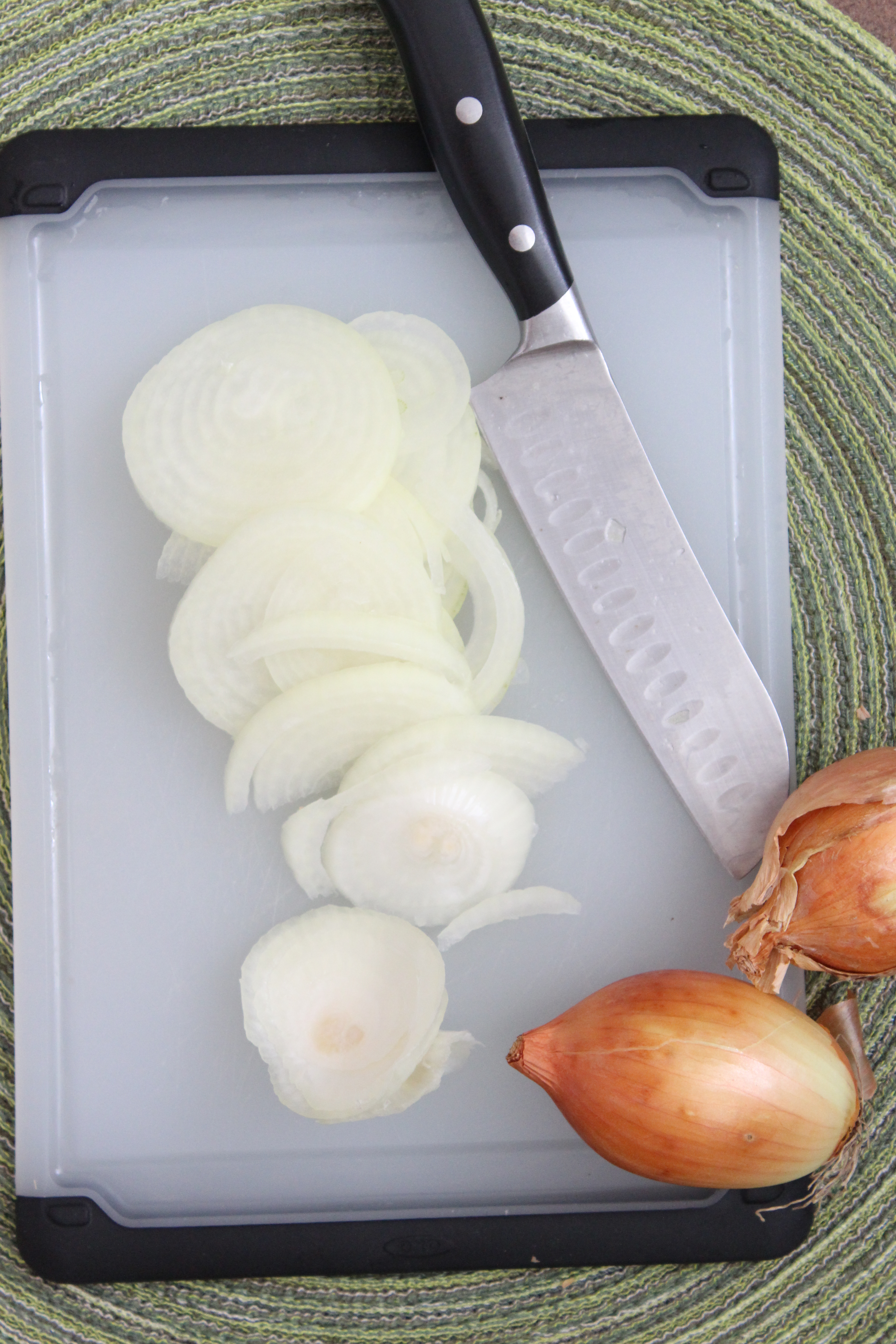 As I’ve mentioned in numerous recipe posts – I’m not a huge fan of onions. Though I recently thought I should try to caramelize some and see if that changed my outlook on them – and boy did it ever. There’s something about them all warm and sweet that makes me think I’m not even eating onions anymore. I’ve tossed them on pizza and in a salad, and I have to admit, I may be an onion convert. (Now if there was only some fix to slicing them… they get me every time!)