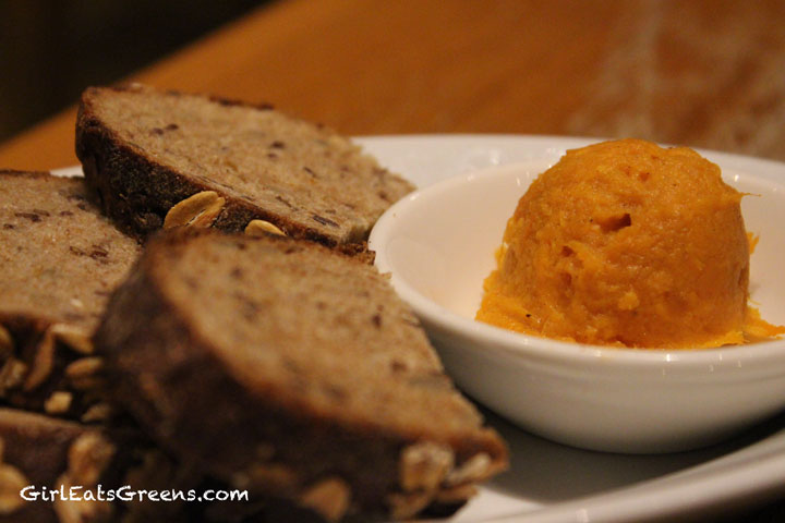 The served bread with a butternut squash mash instead of butter, and it was delicious.