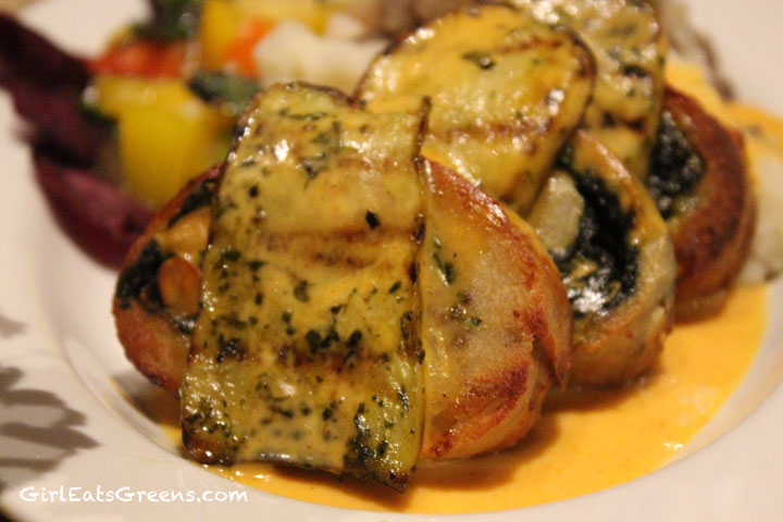R ordered the soy protein & cashew spinach rolls with jade mushrooms. It was so good, I could have sworn there was no way it was vegan. The sauce was so amazing, I found myself wanting more and more off of R’s plate than eating off of mine.