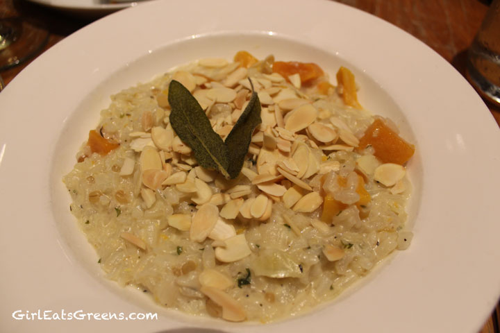 The entrees were good, though I had envy for what R ordered after I had a taste. I ordered the butternut squash risotto, which was a little bland for my liking. But when I took the leftovers for work I added a bit of salt and a roasted garlic clove and it was amazing.