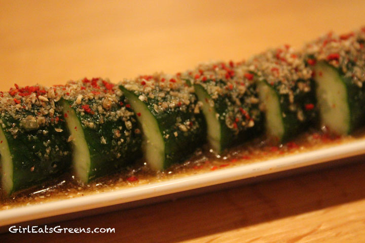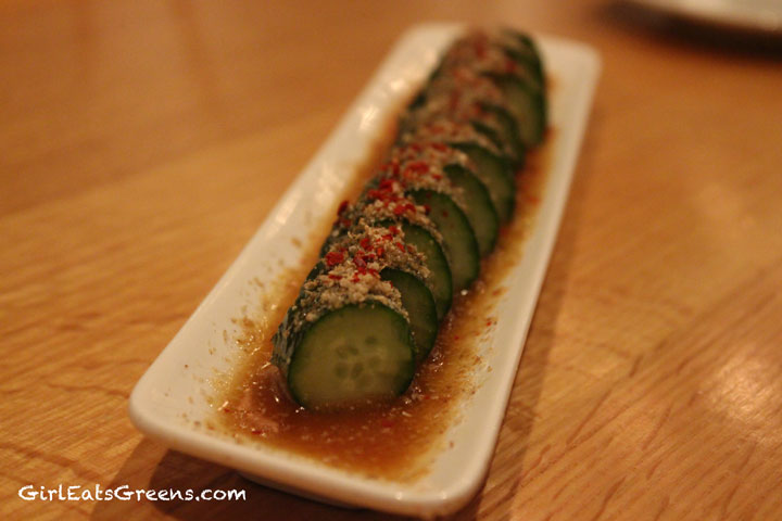 We started with the Yamitsuki Goma Kyuri – cucumbers with a sesame oil. For just a row of cucumbers, these things are absolutely delicious.