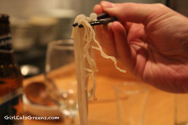 Since the menu is quite pork-heavy, we decided to order a bunch of appetizers and share the vegan ramen. The waitress convinced us we should both have our own ramen, so we ended up with a ton of food. R was still hungry after, but I was more than stuffed. In the spirit of full disclosure, I did not grill the waitress on everything we ordered. I did the best I could by guessing what we could leave out and order, but ultimately whatever tempura batter they used on some of the food, I can not be 100% sure it was vegan. Perhaps I’ll make another trip to investigate.