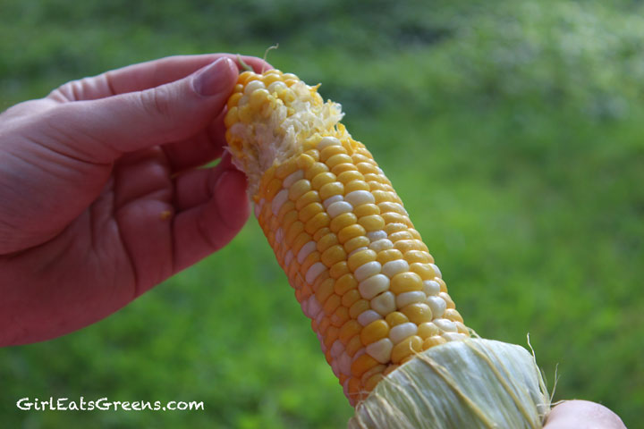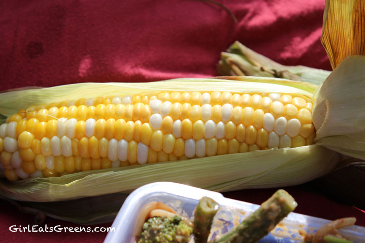 For the corn, I placed the ears directly onto the oven rack at 400 degrees for 12 minutes until the corn was cooked through. Then it’s perfect for traveling – still wrapped in its own husks and ready to eat wherever you end up.