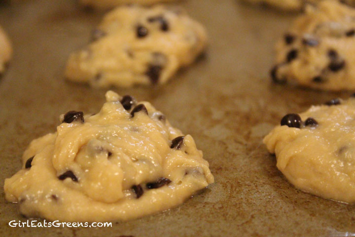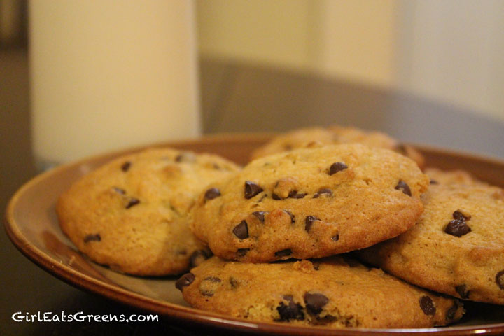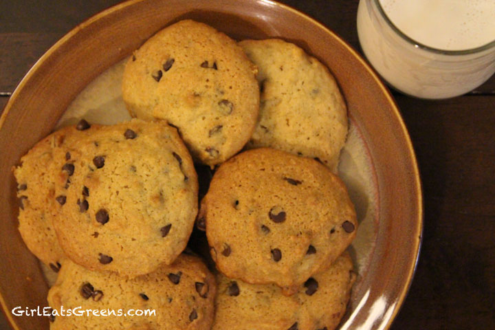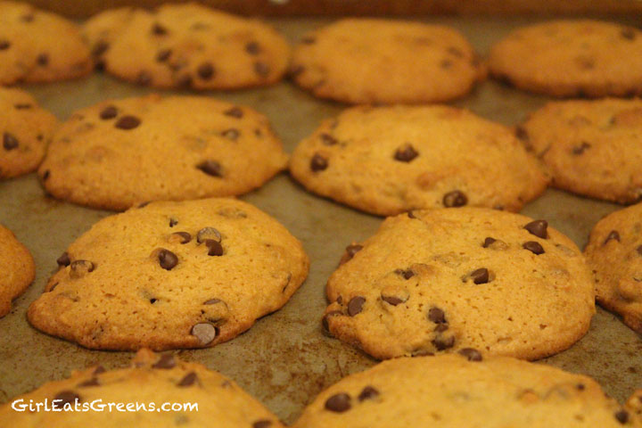 My mom makes the most amazing chocolate chip cookies. Or I should say she used to make the most amazing chocolate chip cookies. Ever since we found out my dad has a gluten allergy and I went vegan, the beloved cookies are no longer family friendly. In a particularly cookie-craving induced bake session recently, I tried to re-create mom’s cookies.