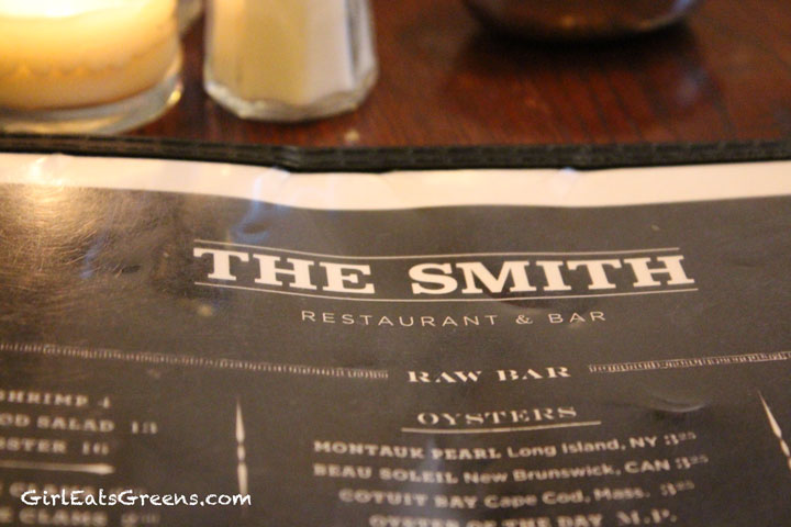 As you may or may not have noticed by now, I eat at a lot of non-American places. My cooking tends to lean heavily on Asian, Mediterranean or Mexican influences. American and French restaurants tend to be hard on me. But I had been to The Smith once before – around lunchtime – and remembered there being amazing salads. When all else fails – order a salad. And I knew the place had a kind of cute upscale diner-y feel to it, and I knew they had a good glass of rose. What else can a girl ask for?