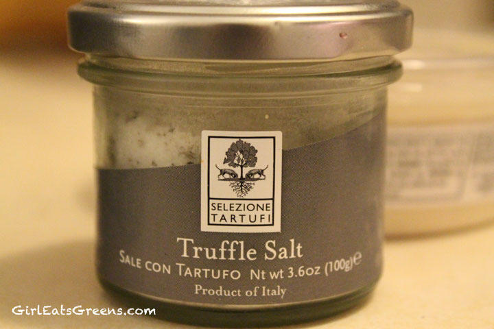 While everything is cooking you can assemble the sauce. Add the tahini and water first. (I must note – in my quest for tahini recently, I picked up Trader Joe’s tahini “sauce” which is different from regular tahini. This already has garlic and lemon added. If you’re working with normal tahini, feel free to add a clove of garlic and some lemon juice). Add the vinegar and whisk together. Then add the truffle salt and make sure everything is well mixed.