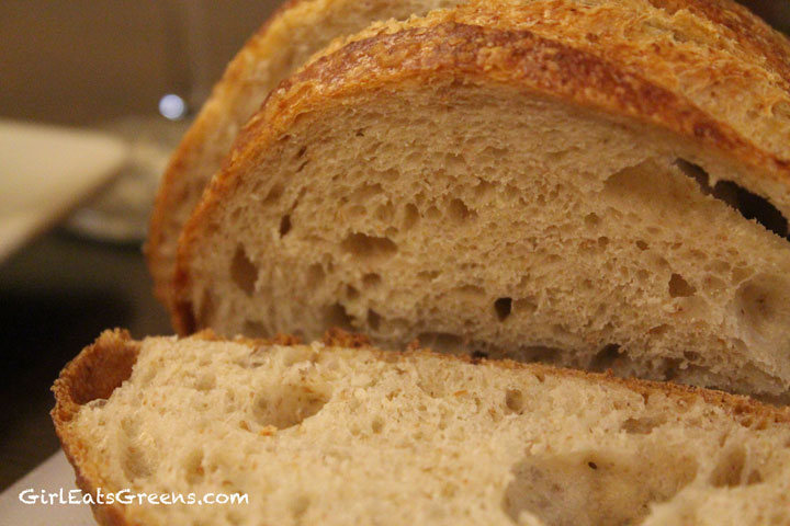 Add all the remaining ingredients together in the pot, using a whisk to get the Daiya to melt and blend in. Then add the broccoli back to the pot and stir everything together. At first the soup seemed a little thin, but as it sat and waited for R to get home from work, it thickened up and was perfect. Just before we ate (and halfway through the photos) I added a little extra Daiya to the top for garnish. Serve with fresh bakery sourdough and you’ll be in fall heaven. (and if you’re gluten free, just omit the sourdough. The soup itself is safe).