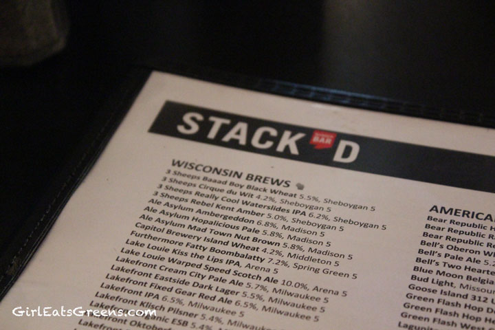 I know, how did I find something to eat at a place in Wisconsin with “Burger Bar” in the name? I have to say, Stack’d takes gluttony to a whole new level. Or perhaps I just hadn’t been to the motherland in a while. When I was back in town for my dear friend’s wedding, I spent the day after with my folks. With a little googling beforehand, I found this amazing place which was not only a great wedding hangover cure, but also comfortably accommodated me the vegan, my gluten-free dad, and my omnivorous mother.