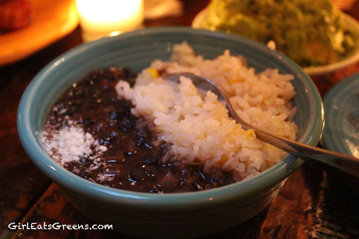 We decided to share dinner, and started with fried plantains and rice and beans. I didn’t eat the sauce with the plantains, I’m pretty sure there was creme involved there, but the plantains were great with a little guac or by themselves. And yes, there was a little cheese on the beans, I ate around that.