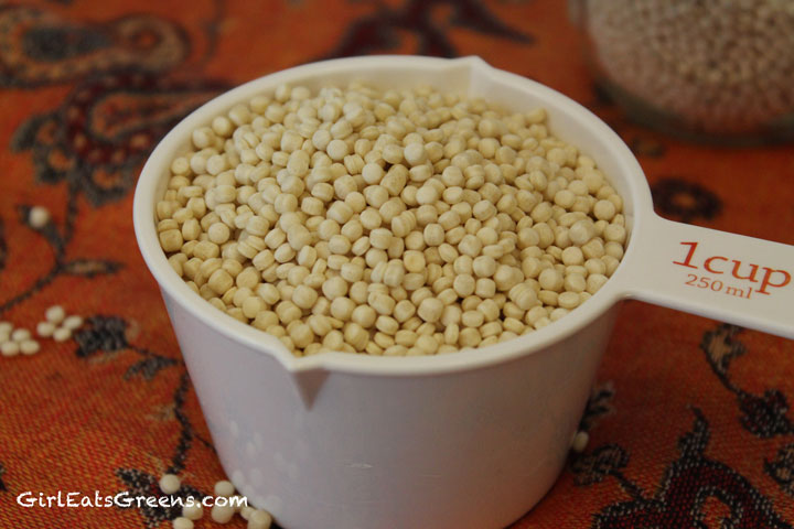 While the vegetables are roasting, prepare the couscous. Bring 2 cups of water to boil, add the couscous, cover, and remove from heat. The water will be absorbed by the time the rest of the meal is.