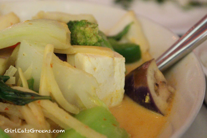 I ordered the vegetable curry with steamed tofu. I’m a bit partial to green curry rather than red, but this was a good curry – spicy but sweet from the coconut milk. I originally planned on eating half and saving the rest for lunch the next day…but I couldn’t stop myself and basically polished the whole thing off.