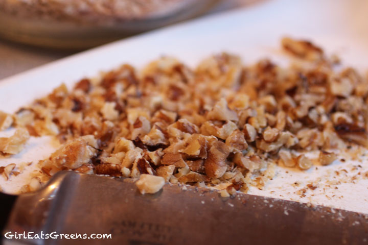Preheat the oven to 350 degrees. Start by slightly chopping the oats so the cookies will hold together easier. Chop the walnuts into small pieces as well.