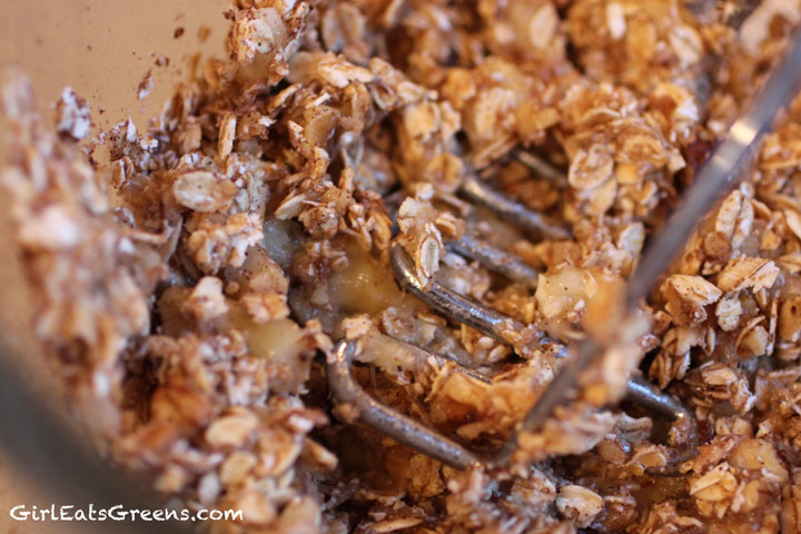 Combine all the ingredients in a bowl, using a fork or potato masher to mix everything together. If the batter seems too dry, add some more banana, or if it’s too wet, add some more oatmeal.