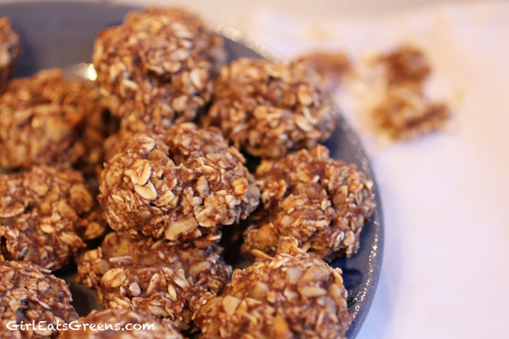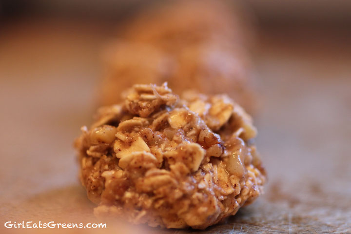 Form the mixture into balls and place on a greased cookie sheet. Bake for 15 or so minutes. And that’s it!