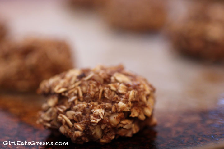 I largely stayed away from the sweets (other than these) during the festivities, since I hadn’t planned on making my own and no one else in my family is vegan. So after watching everyone else with sweets I decided to throw these cookies together with some old bananas my mom had laying around. I forget which blog I was reading a while back when I first heard of cookies like these, but I remembered there being basically two ingredients – so I thought I’d try my hand at these. They were so easy – and so good! – that I think they’re going to be making regular appearances in my kitchen this year.