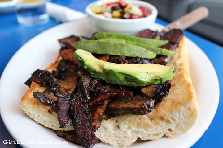I ordered the “Heathen Vegan Shoplifter’s Delight” sandwich. With a name like that how could I not order it? Made with tempeh, portobello mushrooms, caramelized onions and topped with avocado, this sandwich was maybe one of the best sandwiches I’ve ever had. And I’ve had a lot of sandwiches in my day!