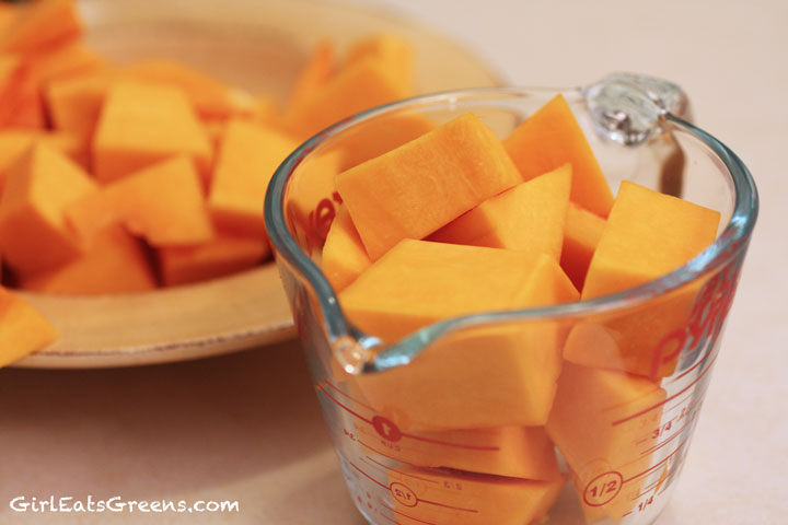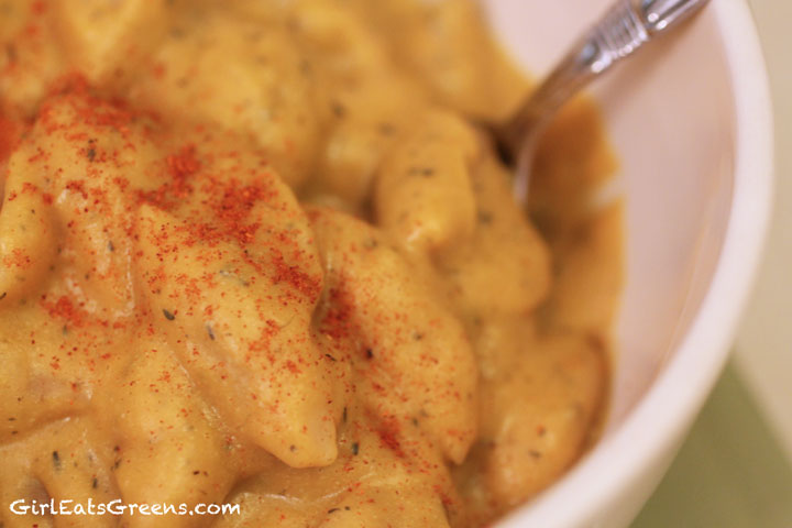 I contacted Kathy to see if I could have her permission to post one of her recipes, and she surprised me by offering to send a copy of her latest book for my review – and a copy to giveaway to Girl Eats Green readers! I have to say, this is my first giveaway, and I’m so excited to be able to share this book with one lucky reader. So far I’ve been able to try out a couple different recipes, and today I’m sharing Kathy’s Cheezy Butternut Squash Macaroni with you all. Details to sign up for the giveaway below.