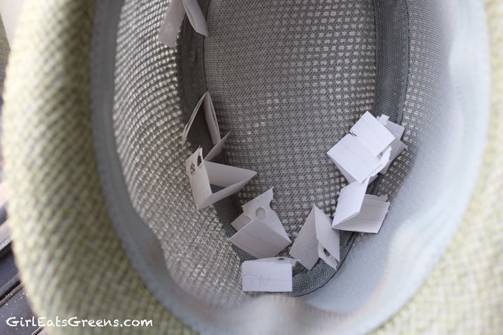 Now let’s get to the winner! I was super high-tech in randomly picking the winner… I pulled out some paper, a pen & an old hat… folded all the names up, shut my eyes, and pulled out a winner!