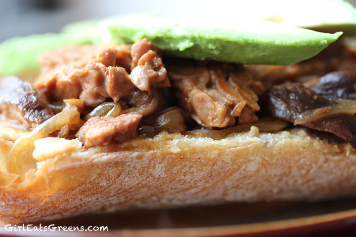 I am still in love with a sandwich I ate at Monty’s Blue Plate Diner in Madison, WI this past December. It was simply amazing. So amazing, in fact, that I am attempting with all my might to recreate it. It was a rich, kind of tangy, tempeh and mushroom goodness. I really couldn’t put my finger on what exactly made it so good. Which makes it all the harder to try and recreate. I have to admit, I didn’t get it quite right. Monty’s was still a bit richer, mine a bit saltier. But never fear, I will try again. In the meantime, this take on the Heathen Vegan was definitely good and blog-worthy so I couldn’t help but share it. If you’re looking for a sandwich that’s extremely hearty almost meaty, you’ve come to the right place. Though be patient, this recipe calls for marinating and slow cooking. If you’re in a rush, maybe come back to this another day. But if you have some time, it’s definitely worth it. (and it’s mostly inactive time anyway – perfect for multitasking)