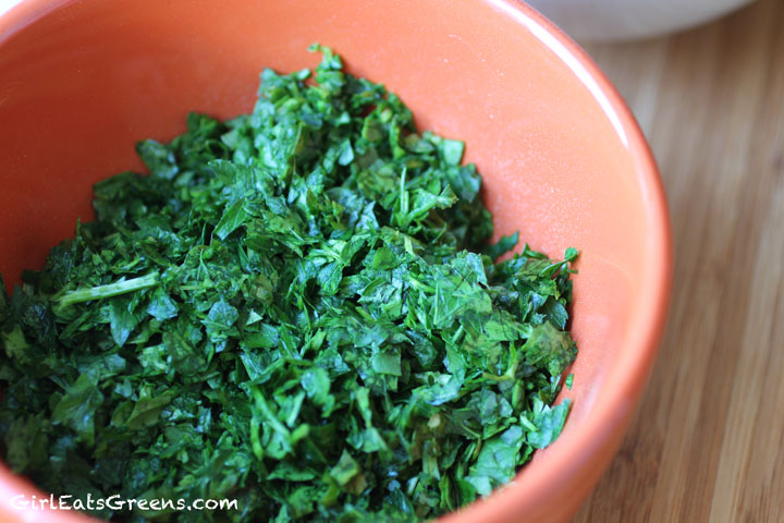 Preheat the oven to 350 degrees. Start by prepping all the ingredients. Chop the mushrooms, onion, spinach, parsley, walnuts.