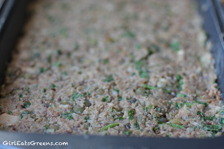 Yes, yes. I am still on my faux meat kick. It started with meatballs. And then more meatballs. And has now morphed into meatloaf. You could say I’m a bit…hooked. I have never been a huge fan of meat. But as a kid there was something about my mom’s meatloaf that actually got me to eat it. Maybe it was the ketchup on top that was baked and kind of sticky sweet, or maybe it was the potatoes mushed up with it that made it even better. I’m not quite sure what it was that made me want to eat that meat and not others, but I thought why not try to re-create the one meat I actually liked? So I tweaked the meatball recipe a bit and came up with this. It was a great recreation of my mom’s meatloaf without all the…you know, meat.