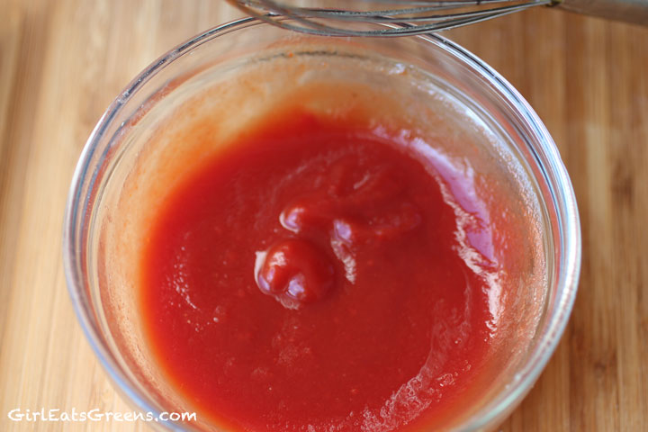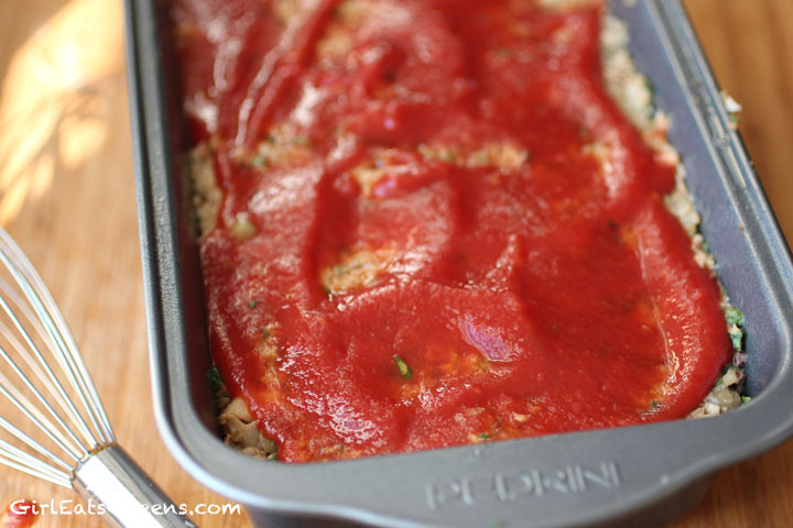 Mix the remaining tomato paste, vinegar, and maple syrup in a small bowl for the glaze. I had originally thought of doing ketchup, like my mom. But then I realized the ketchup in my fridge had an expiration date of 2012. Really? That was a pretty disturbing discovery. Clearly, ketchup isn’t in high demand in this household.Spread the glaze on top of the loaf and place in the oven for 50-60 minutes.