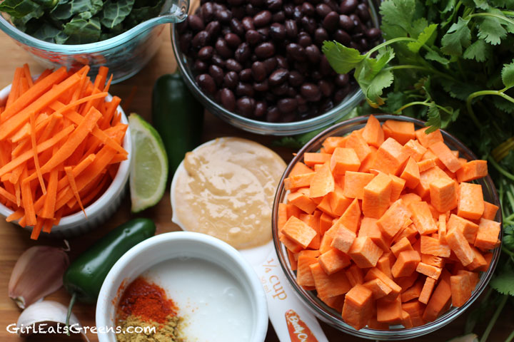 There are sometimes where I lay in bed dreaming up recipes in my head. What could I put with what? Would those flavors work well together? Once an inspiration hits me, I just let my brain run with it until I have it pretty much all mapped out in my head before I ever even step foot in the kitchen. It usually starts with something I have laying around that needs eating. (In this case, a sweet potato). Then I think about what else I have that could go with it. And what I’m in the mood for. Since Thailand is pretty much in the back of my head constantly because we’ll be traveling there so so soon! I often crave Thai food or Asian food.