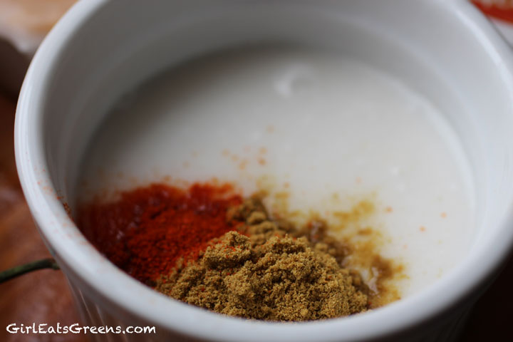 3. Add the 1/4 cup coconut milk, cayenne, and cumin and mix well