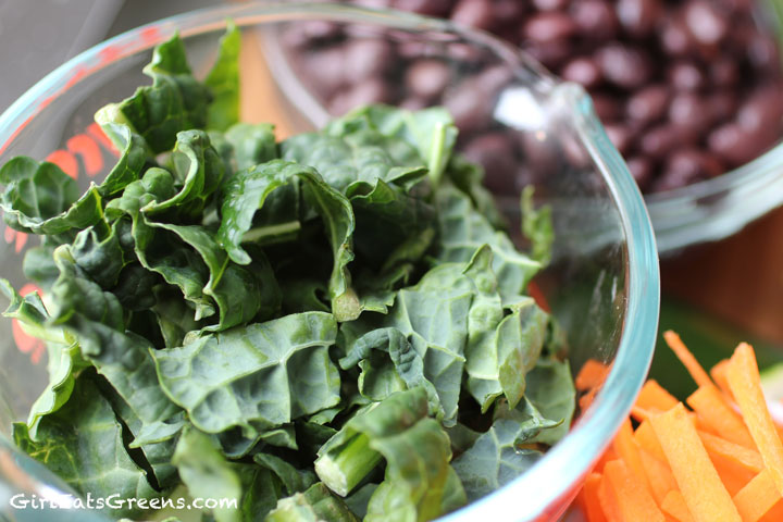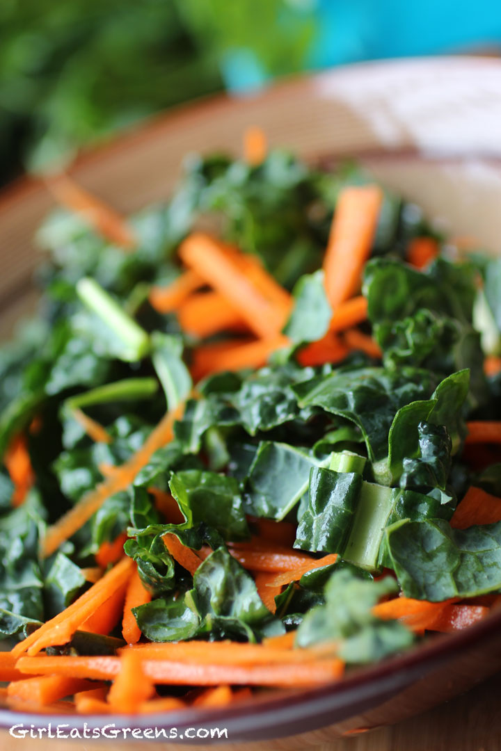 I like a little crunch with my tacos, so to get that, I went with a kale and carrot slaw.  Shredded kale and julienned carrots tossed on toasted sesame oil and lime juice – that combination was simple but really flavorful and added a terrific Asian twist.