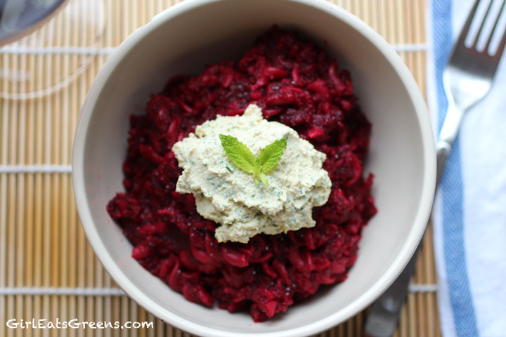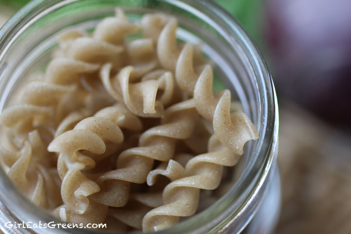 I decided to go with a fusilli pasta so that all the puréed beets and poppies would get all into the crevices and make sure the sauce got all over the pasta. I have to say, it was a great choice. I also went with a brown rice pasta the dish is also gluten-free and celiac friendly.