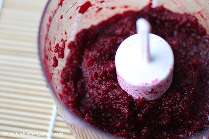 The beets can be a bit of a pain, the whole roasting and peeling process is a bit of a pain, but it’s mostly down time so as long as you’re planning on being home anyway. I found it a great time to clean up the kitchen and do other odd jobs. And it also gave me an excuse to roast garlic as well – and I’m always super excited to have roasted garlic laying around, so it was really a win win. Especially when I mixed the roasted garlic into both the beet sauce and the ricotta. It gave everything a richer flavor that was terrific. And luckily, my fingers were only magenta for a small amount of time afterward.