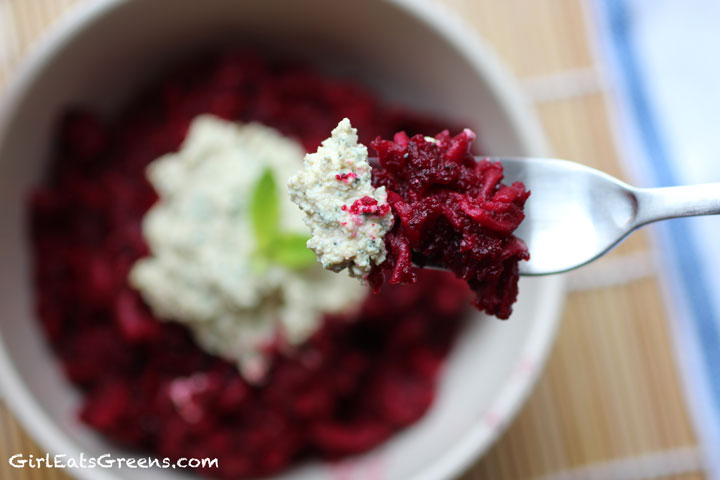 In my pre-vegan, early dating days with R I wanted to make him a nice, inventive dinner one night. Back then, inventive was something that took longer than 5 minutes to whip up. I found a recipe somewhere online for a browned butter and poppy seed beet pasta that was topped with goat cheese. I hate goat cheese, so I had replaced it with a brie. That wasn’t the best decision. The pasta looked amazing, but it was so rich neither of us could eat very much of it.