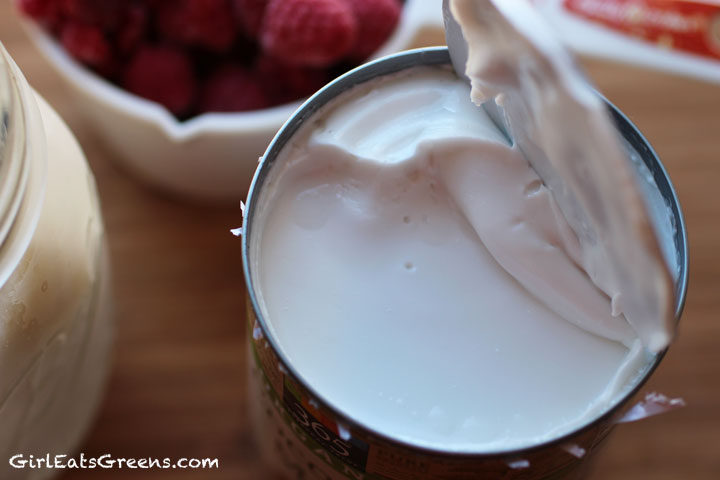 For a cream, I decided to use whole fat coconut milk. Did you know if you don’t shake the can, you can open it up and there’s this rich, thick cream on top before you get to the milk? It’s amazing – it has the same consistency of whipped cream. It’s simply decadent.