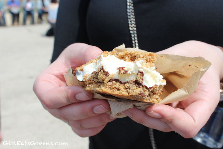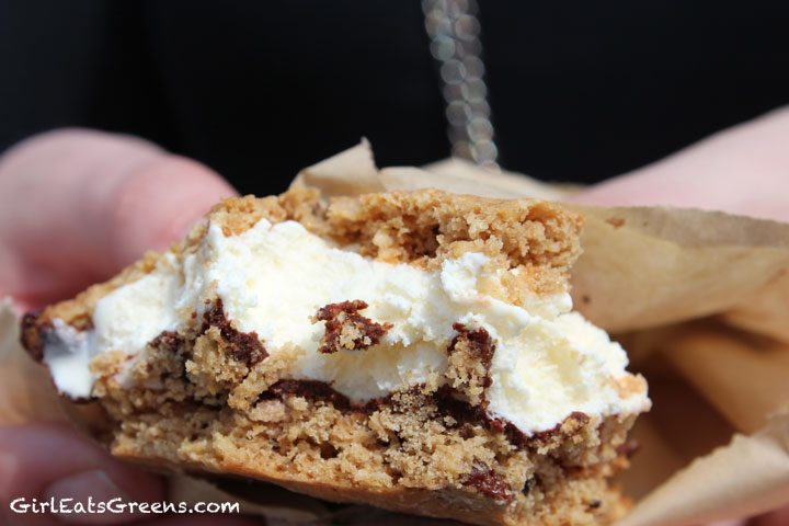I have a feeling the meat burger version is quite a bit better, based on Erin’s (and others’) reactions. But the tofu one was pretty good. It could have used a little kick of some sort or a bit more flavor, but I think that’s probably to be expected when you combine tofu and ramen – two pretty bland ingredients. It was pretty fun to eat and stayed together well, to my amazement. And now I can say – I ate a ramen burger! (and let’s be honest, I’ll likely eat another one the next time I’m there). But a bit of warning if you’re heading to Smorgasburg – go early! The lines only get longer for the burgers, and they tend to run out.