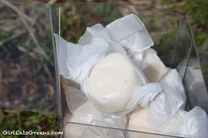 I had to bring home some extras again for R, who unfortunately was working both times I hit up Smorgasburg. I brought back Pipcorn again, and also some of the most awesome saltwater taffy I’ve ever had. Did you know that saltwater taffy can be made vegan? Honestly, I didn’t know what was in regular saltwater taffy, but once I saw the vegan coconut option I was all in.