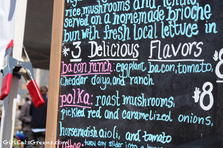 I have to say the Phatty Beet Slider has inspired me to to try to and recreate my own. It was made with lentils, beets and rice. It was delicious – messy – but delicious. I had to eat it with the fork… but it was totally worth it. The sliders come in three different flavors. I went for the polka which adds roast mushrooms, pickled red and caramelized onions with horseradish aioli and tomato. It was phenomenal.