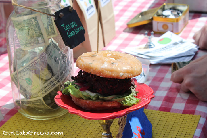 The cheese was served on top of a delicious bed of kale. And was somewhat reminiscent of goat cheese. Now, I hate goat cheese. But this was awesome. It was kind of crispy on the outside and warm and gooey on the inside, which is what I think people who like goat cheese like about it? Mixed with the saltiness of the kale, it made the most amazing salad I’ve had in quite a long time. This might be a bit hard to believe, but this salad was probably my most favorite thing at Smorgasburg. Is it strange that of all the amazing foods at Smorgasburg my favorite was a kale salad? Maybe. But then again, maybe you’ve never had the kale salad from the Regal Vegan.