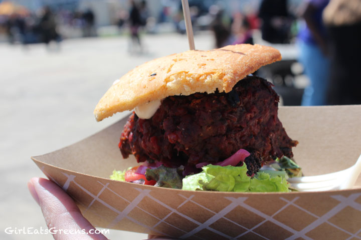 For the second course I wanted to try out another vegan food stand – the Regal Vegan. As I walked by the stand I noticed one of the women frying something, which upon further examination I found was a cashew cheese. Fried cheese? Yes please!