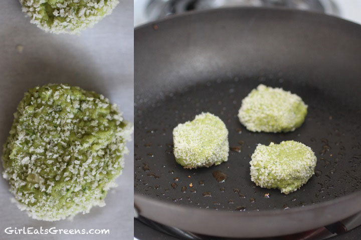 6. Place 1-3 cheese balls onto the skillet and fry. I like to work in small batches, with as little oil as possible to keep the frying as “healthy” as possible. I found 3 to be the max I could fry at one time without burning everything.