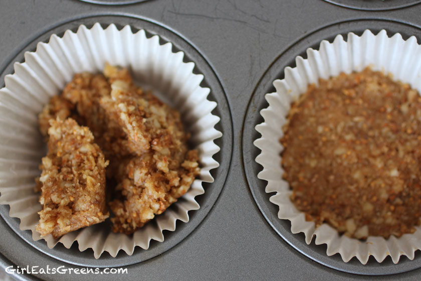 3. Using a spoon and your hands, pack the crust down into the bottom of the tins.