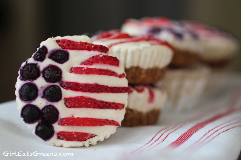 When you’re ready to devour them, take them out of the freezer and let them sit for a couple minutes and they’ll be just like that traditional cheesecake consistency we all know and love. Can’t wait? They’re perfectly delicious as a frozen treat too. I even managed to taste test them on a non-vegan. They went over very well. This is to say, they’re sure to be a big hit at your 4th of July gathering. Or just on your couch, while you catch up on the 2nd season of “Orange Is The New Black.” Your tastebuds will thank you. And so will your country. (maybe?)