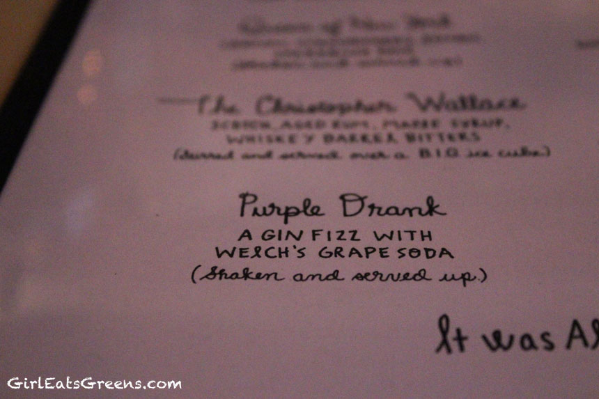 Sweet-Chick-NYC-5The restaurant itself has a great vibe – hipster yet hip hop and somehow southern shabby rustic chic. Yeah – it’s a lot to pull off. But they did it flawlessly. The menu is filled with references you might not get unless you’re into 90s rap – the Christopher Wallace, for example – is one of their drinks. As is purple drank. No, that’s not a typo.