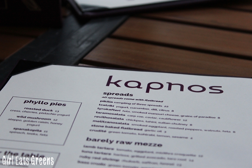 On my last trip I was lucky enough to meet up with two of my favorite DC ladies for a happy hour extravaganza followed by a tapas dinner extravaganza. For dinner, we ended up at Kapnos – a Greek restaurant that is one of some reality cooking show star’s restaurants. I don’t have cable, so I actually have no idea who the guy is. But apparently he’s kind of a big deal. We headed there just around sunset and scored a table outside – perfect for the not-too-muggy evening we were lucky enough to have.