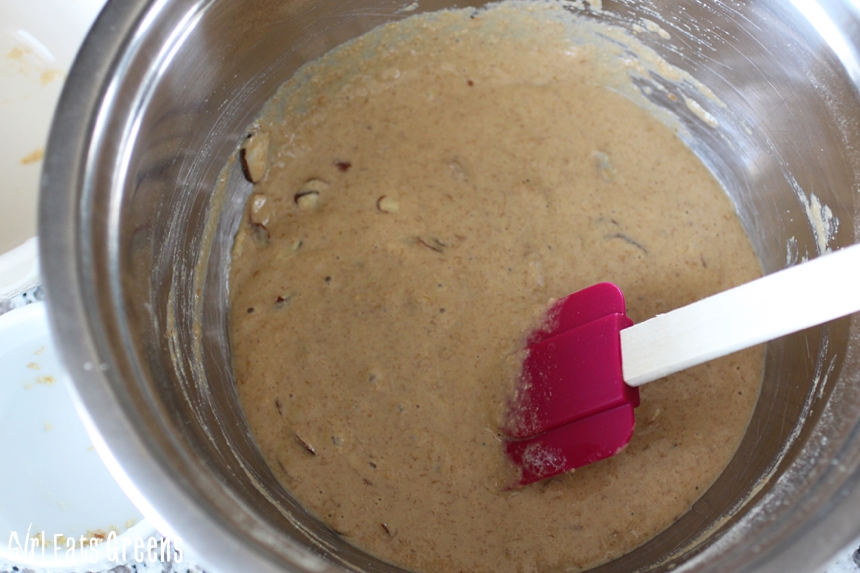 4. Add the flax egg to the dry ingredients and then add the rest of the wet ingredients and stir until everything is incorporated, but not over mixed.