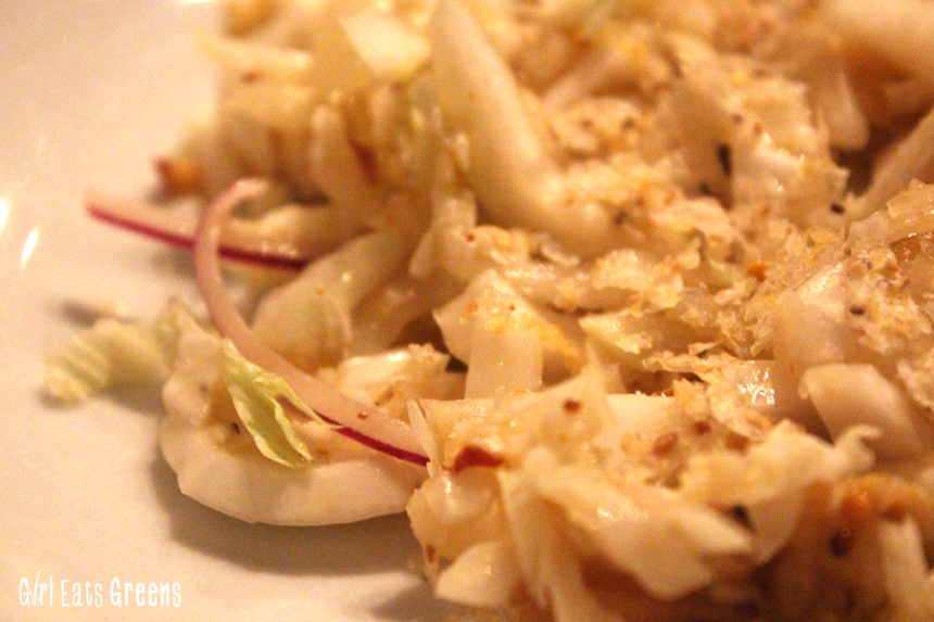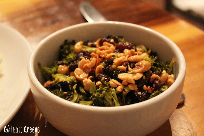 I didn’t want to completely embarrass my colleague and since I knew this was one of her favorite places, I said I would stay so she could eat as long as we went to another restaurant so I could eat later. In the meantime, I did break down and order that cabbage and red onion salad and a side of broccoli with peanuts and raisins.