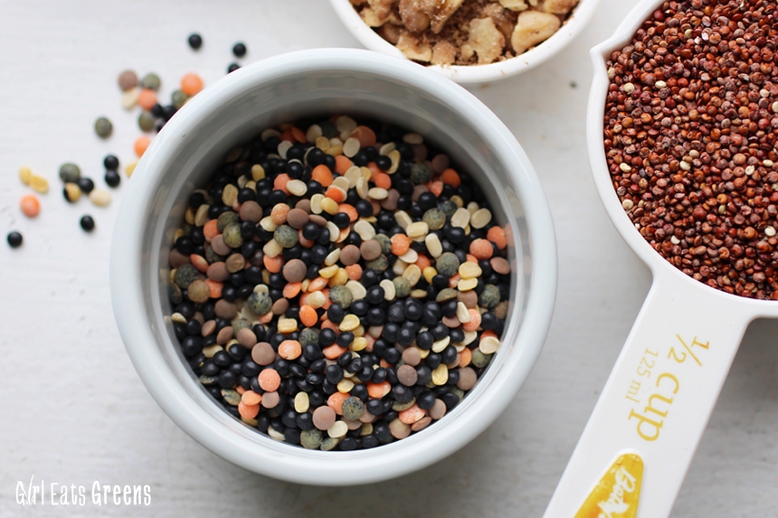 - 1/4 cup mixed color lentils (plus 3/4 cup of water)
