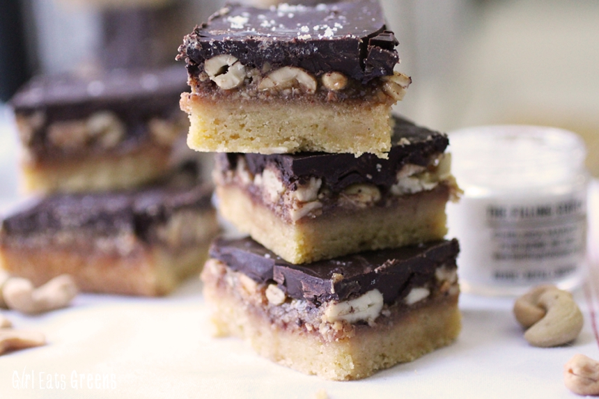 Salted Caramel Cashew Chocolate Cookie Bars Gluten Free Vegan Vegetarian Girl Eats Greens_0026